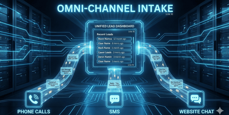 Capture leads from phone calls, SMS, and website chat in one unified dashboard.