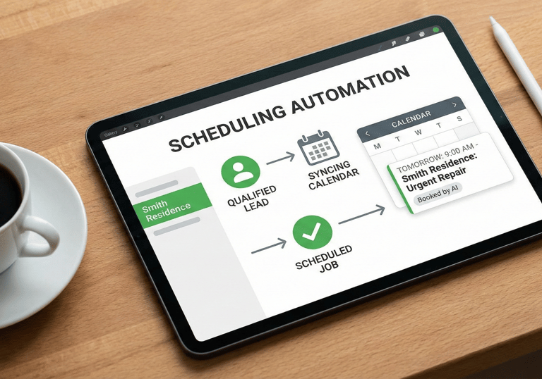 Once qualified, the AI syncs with your calendar to book the job immediately, moving the lead from "interested" to "scheduled" without human intervention.