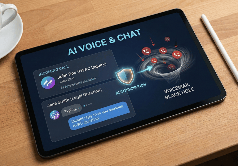 Our AI Voice and Chat tools answer calls and messages instantly, replacing the "black hole" of traditional voicemail.