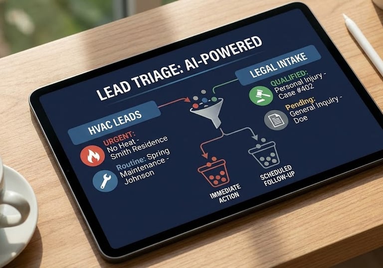 The AI triages leads based on your criteria—identifying emergency HVAC repairs versus routine maintenance, or qualifying legal cases before they hit your desk.
